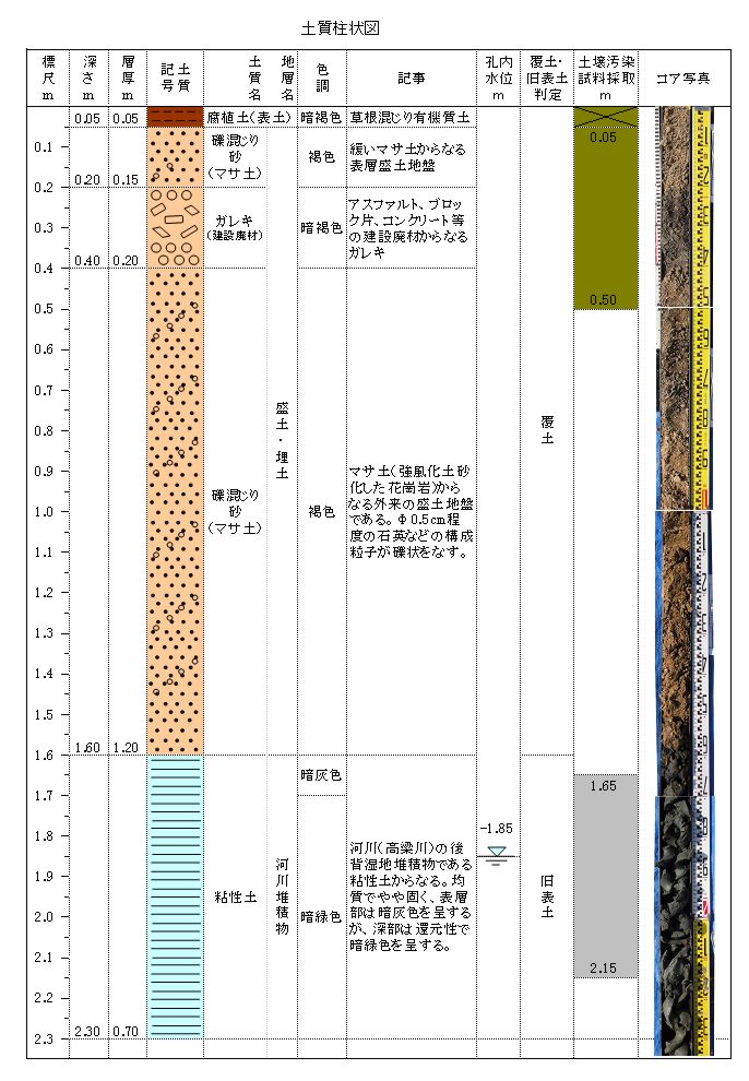 も備えています。土質柱状図ファイルのダウンロードは、こちら からできます。ただしコア写真を貼り付けているため、ファイルサイズが680KBと少し大きめです。